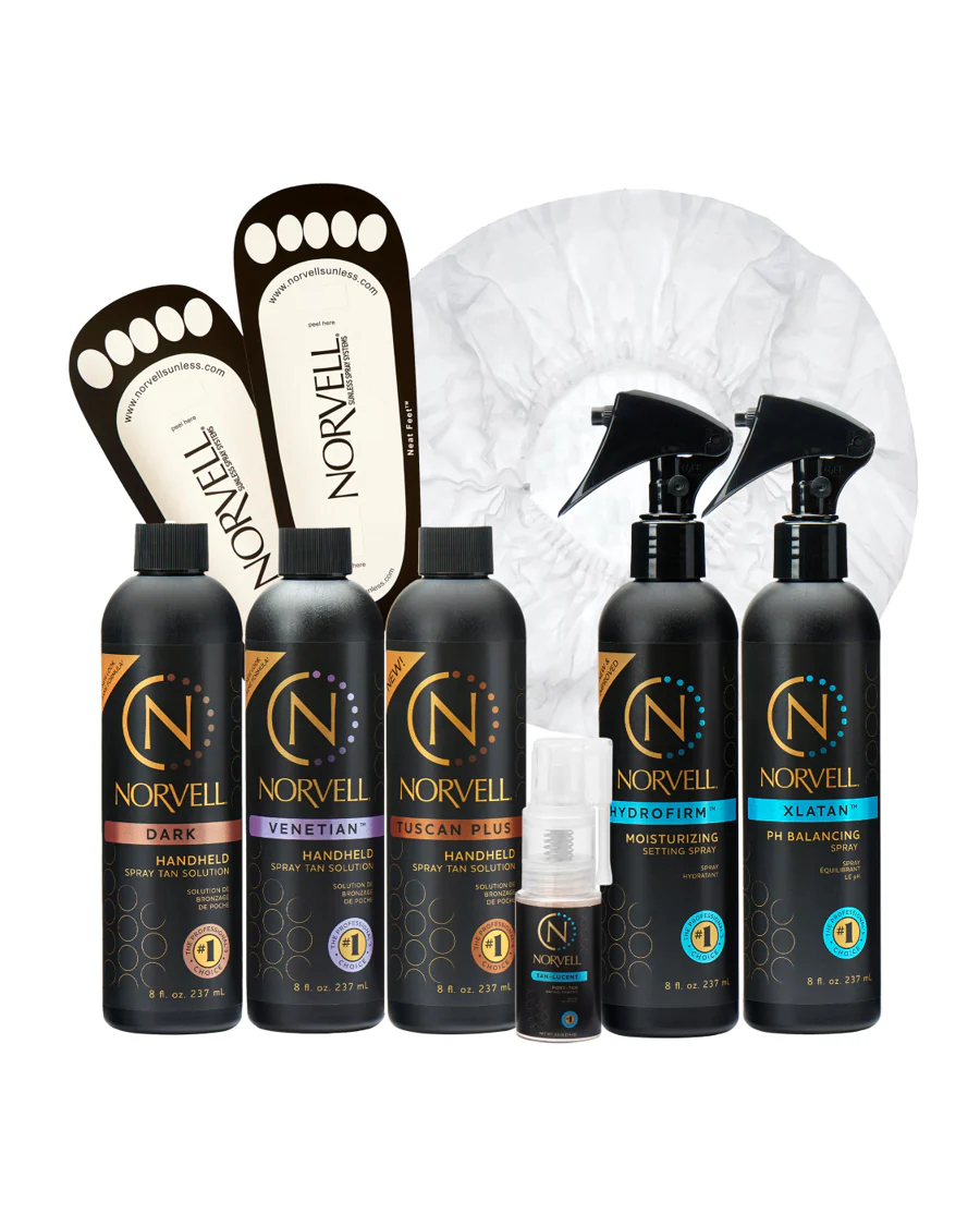Includes soothing prep spray, application of hydrating spray tan suited to your skin tone, optional bronzer and sculpting, setting spray & powder to finish.